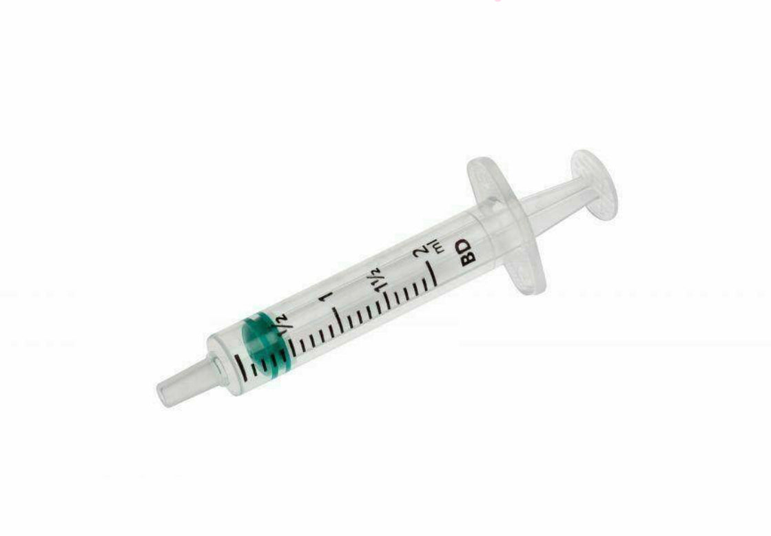 The 2.5ml syringe is a single use latex free sterile syringe, for injection and infusion.